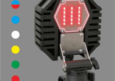 La tête de la lampe peut être inclinée jusqu’à 90°. Elle offre un changement rapide entre 4 couleurs de voyant grâce à un sélecteur rotatif.