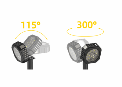 - Rotation lampe : 300° horizontal / 115° vertical